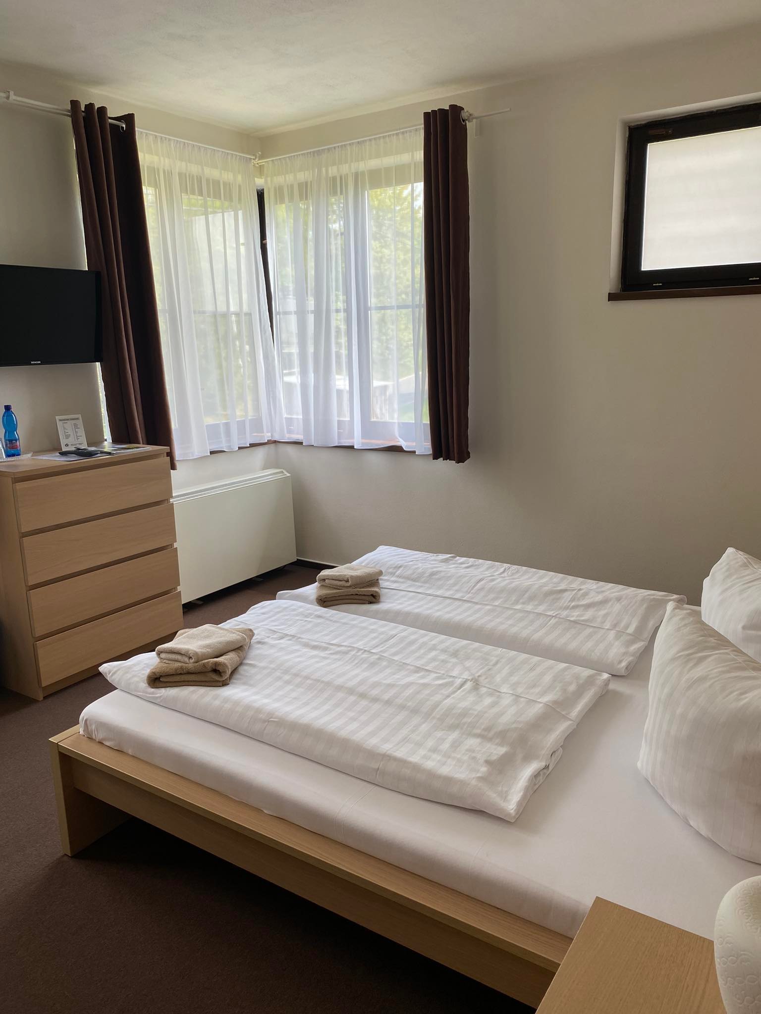 Doppelzimmer mit Ehebett im 1. Stock ohne Aufzug, Badezimmer mit Dusche, WC