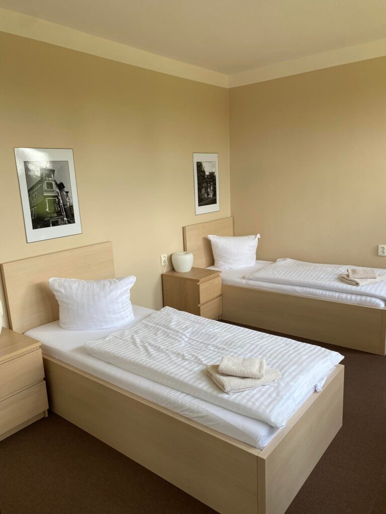 Apparte,ent im 1. Stock ohne Aufzug. Zwei Schlafzimmer - 1x mit Doppelbett, 1x mit zwei Einzelbetten. Ausgestattete Küchenecke - Wasserkocher, Kühlschrank, Kochplatte, Geschirr, Mikrowelle, Esstisch für 4 Personen. I