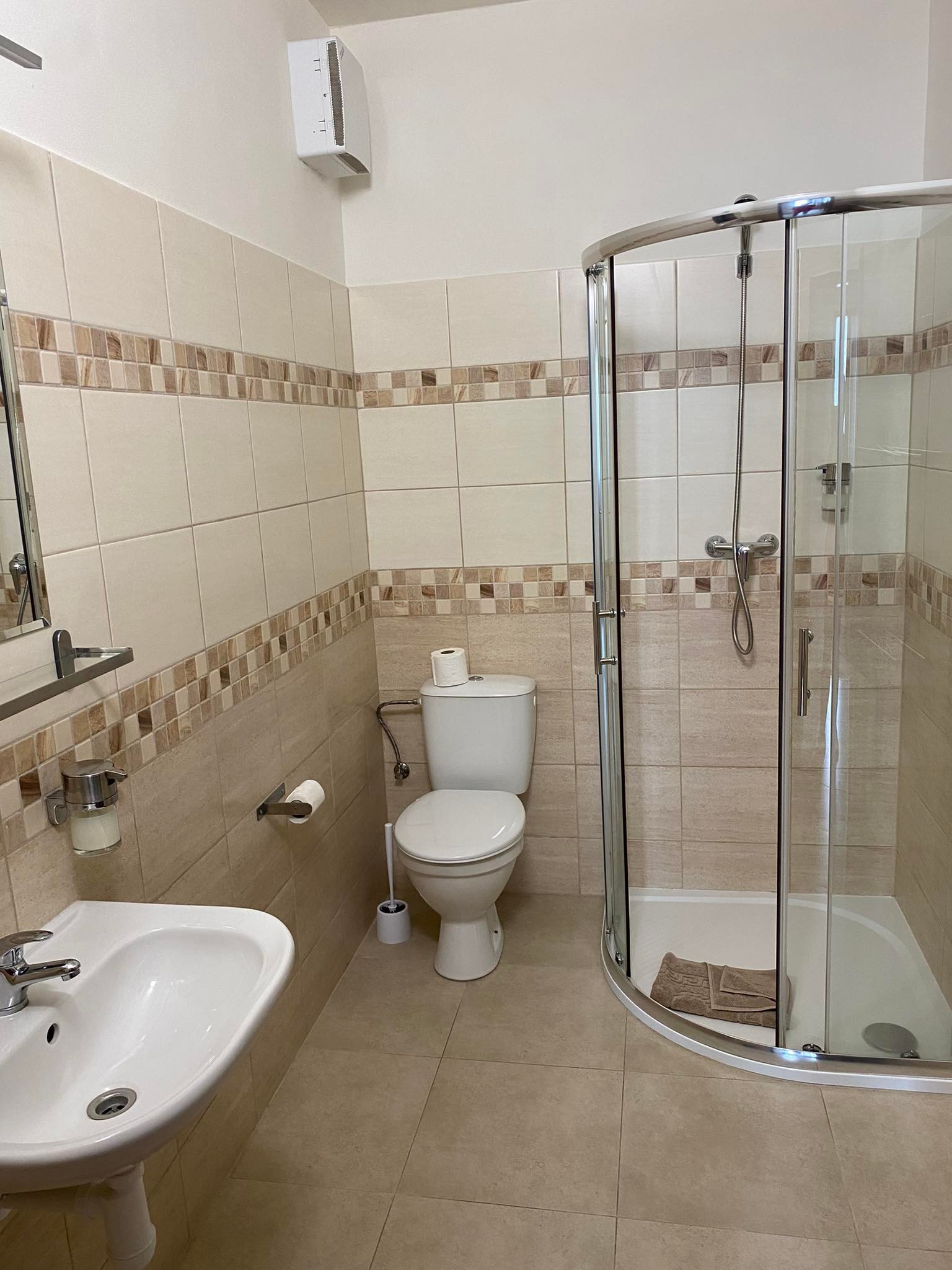 Apparte,ent im 1. Stock ohne Aufzug. Zwei Schlafzimmer - 1x mit Doppelbett, 1x mit zwei Einzelbetten. Ausgestattete Küchenecke - Wasserkocher, Kühlschrank, Kochplatte, Geschirr, Mikrowelle, Esstisch für 4 Personen. I